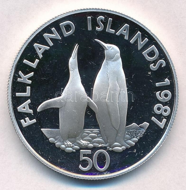 Leírás: Falkland-szigetek 1987. 50p Ag "Királypingvinek" T:PP felületi karc