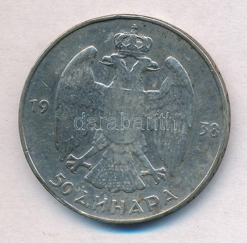 Leírás: Jugoszlávia 1938. 50D Ag "II. Péter" T:2- patina