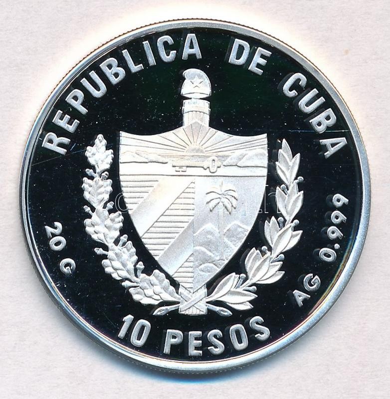Cuba 1996. 10 Pesos Ag "Brown Pelican" reverse multicolor painted C:PP fo.