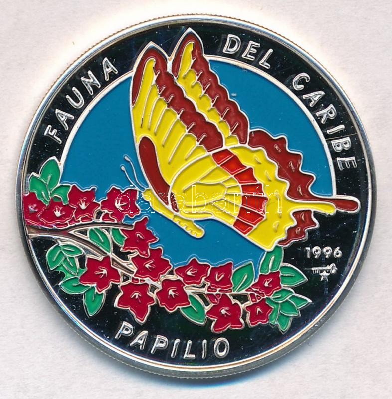Cuba 1996. 10 Pesos Ag "Papilio Butterfly" reverse multicolor painted C:PP spotted