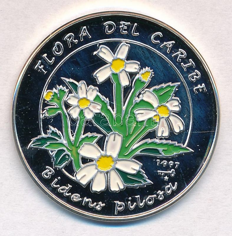 Cuba 1997. 10 Pesos Ag "Bidens pilosa" reverse multicolor painted C:PP spotted