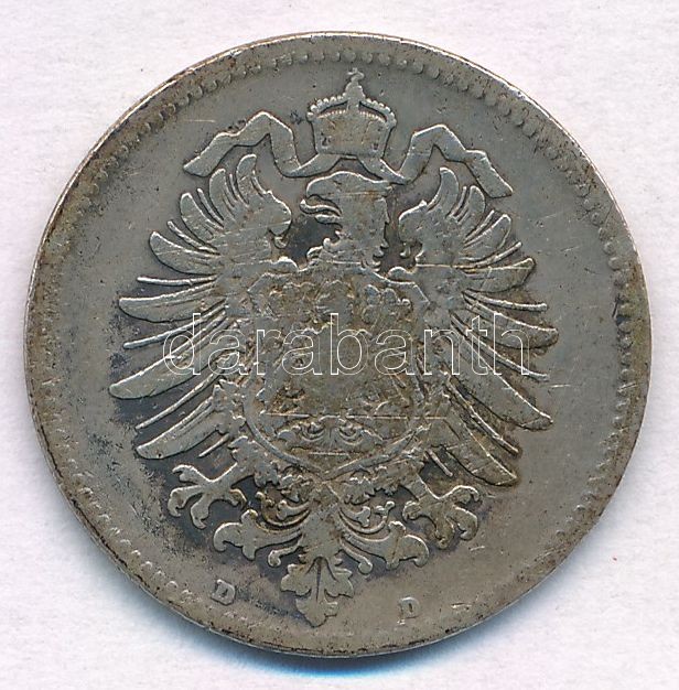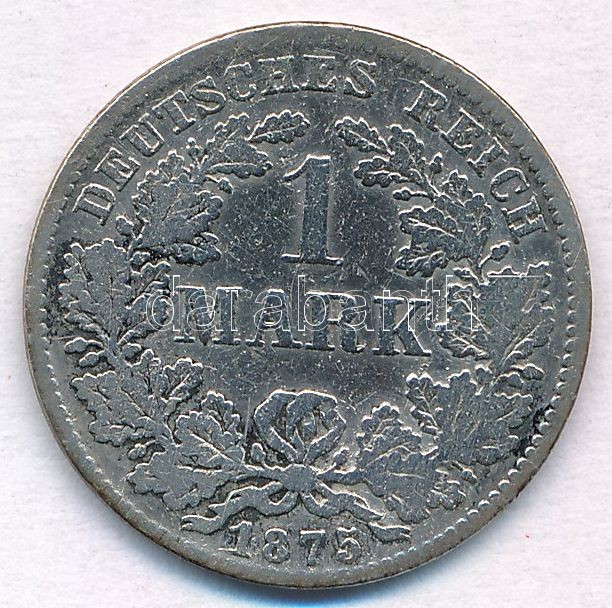 German Empire 1875D 1 Mark Ag C:F https://www.darabanth.com/hu/322-Gyorsarveres/322.0/Numizmatika/Kulfoldi-fem-es-ezustpenzek~2500013/Nemet-Birodalom-1875D-1M-Ag-T3-German-Empire-1875D-1-Mark-Ag-CF~II1785196