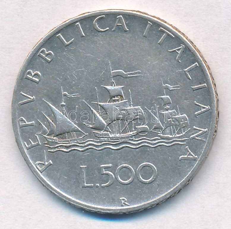 Italy 1964R... https://www.darabanth.com/hu/322-Gyorsarveres/322.0/Numizmatika/Kulfoldi-fem-es-ezustpenzek~2500013/Olaszorszag-1964R-500L-Ag-Kolumbusz-hajoi-T2-Italy-1964R-500-Lire-Ag-Columbus-ships-CXF~II1770241