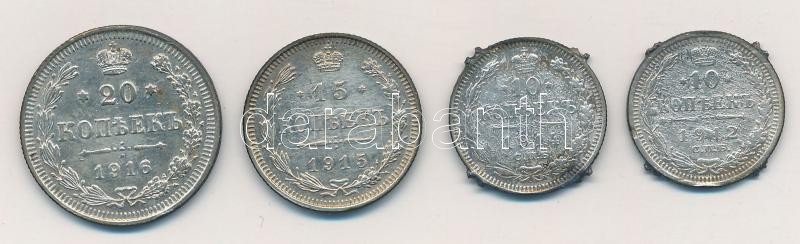 Orosz Birodalom 1912. 10k Ag + 1914. 10k Ag + 1915. 15k Ag + 1916. 20k Ag T:2,2- brossnyomok