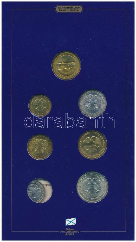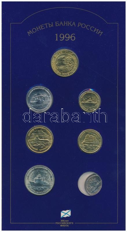 Russia 1996. 1 Ruble - 100 Rubles (6xdiff) + Br jetone "300th Anniversary of the Russian Navy" in original case C:BU