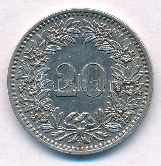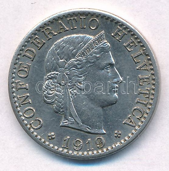 Krause K... https://www.darabanth.com/hu/322-Gyorsarveres/322.0/Numizmatika/Kulfoldi-fem-es-ezustpenzek~2500013/Svajc-1919B-20r-Ni-T1---Switzerland-1919B-20-Rappen-Ni-CAU--Krause-KM2329~II1748550