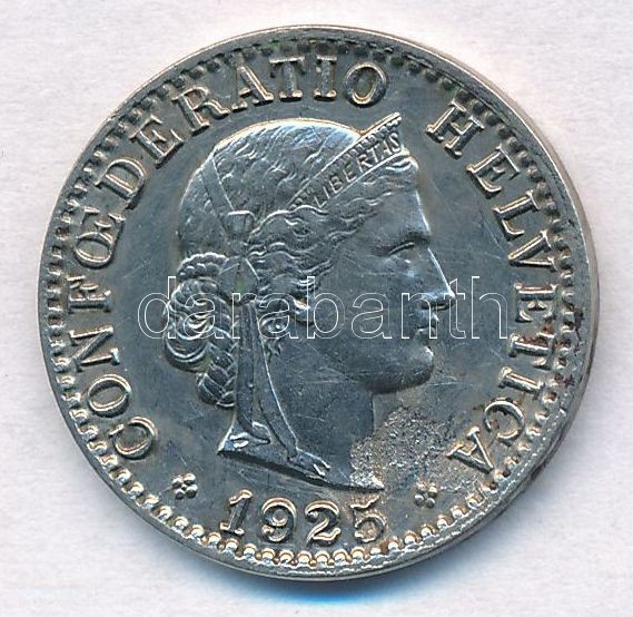 Switzerland 1925B 20 Rappen Ni C:XF https://www.darabanth.com/hu/322-Gyorsarveres/322.0/Numizmatika/Kulfoldi-fem-es-ezustpenzek~2500013/Svajc-1925B-20r-Ni-T2-Switzerland-1925B-20-Rappen-Ni-CXF~II1770237