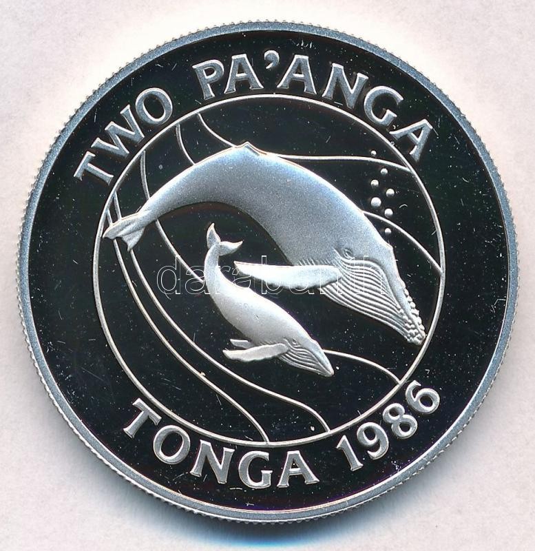 Tonga 1986. 2 Pa'anga Ag "Humpback whale" C:PP slightly scratched