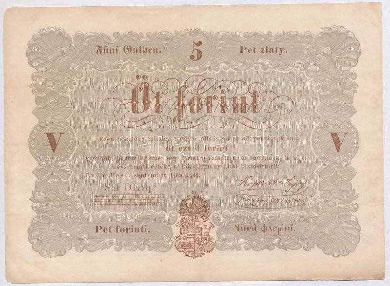 Leírás: 1848. 5Ft "Kossuth bankó" barna nyomat T:III