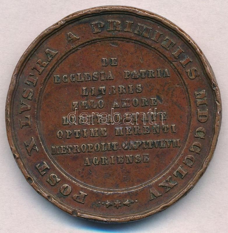 1865. "Kisapponyi Bartakovics Adalbert egri érsek papságának 50. évfordulója" Br emlékérem. "ADALBERT BARTAKOVICS DE KISAPPONY AEPPVS AGRIENSIS / POST X LVSTRA A PRIMITIIS MDCCCLXV - DE ECCLESIA PATRIA LITERIS ZELO AMORE LIBERALITATE OPTIME MERENTI METROPOLIT CAPITVLVM AGRIENSE". (43mm) T:3 több ph.