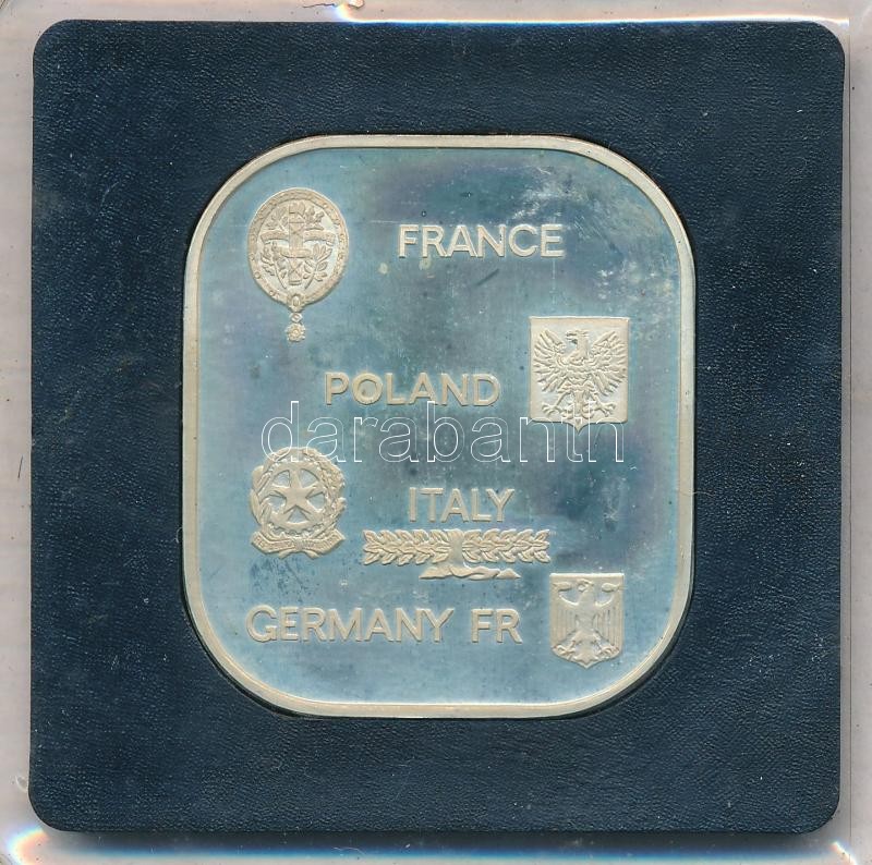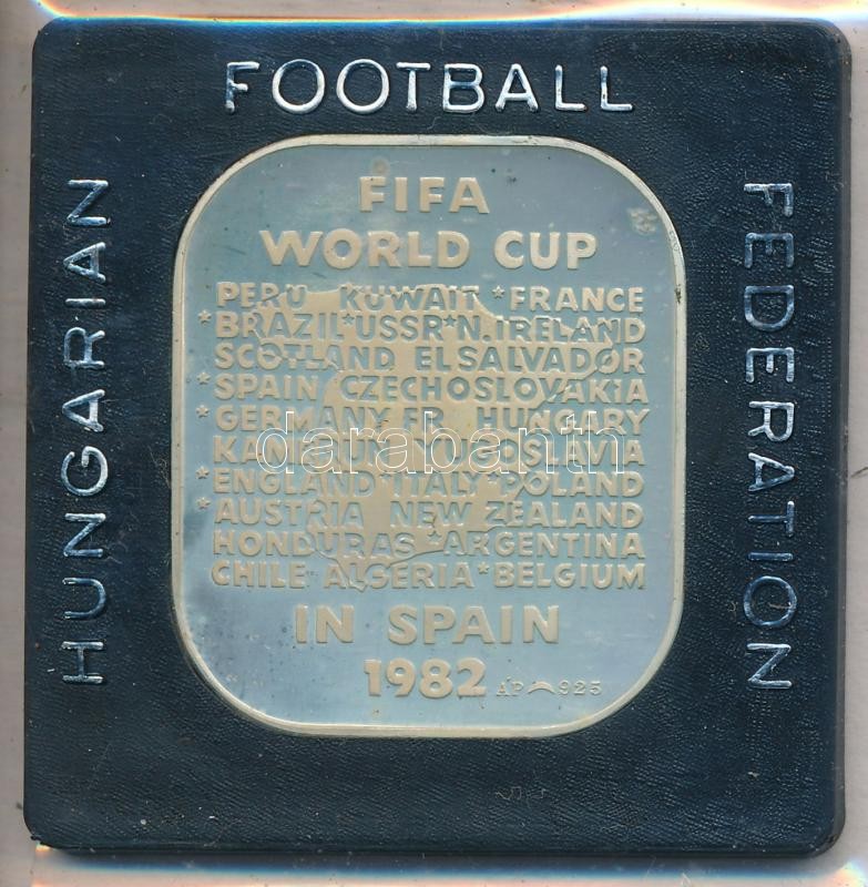 1982. "MLSZ / FIFA Világbajnokság Spanyolországban / Franciaország, Lengyelország, Olaszország, NSZK" Ag emlékérem eredeti tokban (35g/0.925/35x40mm) T:1 eredetileg PP