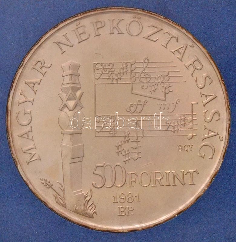 Leírás: 1981. 500Ft Ag "Bartók Béla" MNB tokban T:BU