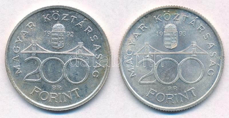 Leírás: 1992-1993. 200Ft Ag "MNB" (2x) T:1-,2 patina