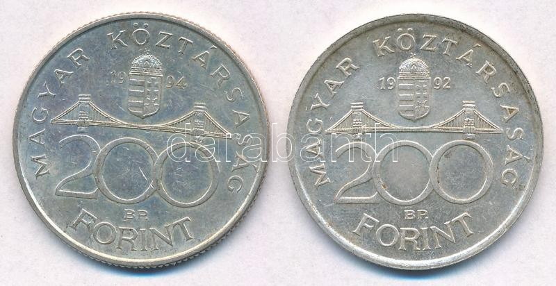 Leírás: 1992-1994. 200Ft Ag "MNB/Deák" (2x) T:2