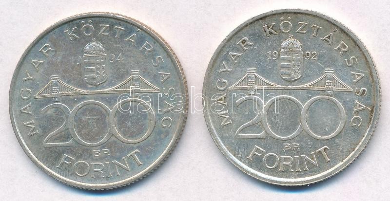 Leírás: 1992-1994. 200Ft Ag "MNB/Deák" (2x) T:2