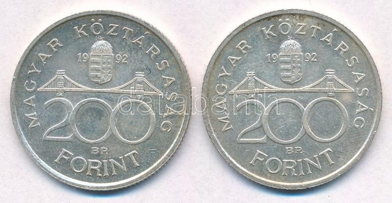 Leírás: 1992. 200Ft Ag "MNB" (2x) T:1- kis patina
