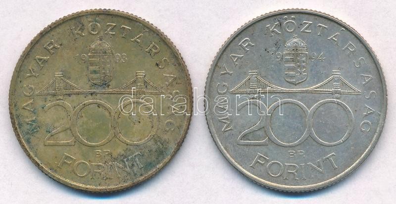 Leírás: 1993-1994. 200Ft Ag "MNB/Deák" (2x) T:2 erős patina