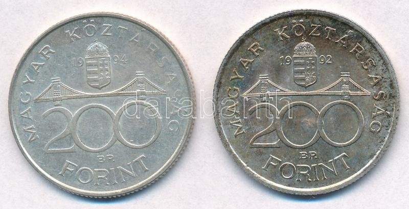 Leírás: 1994. 200Ft Ag "Deák" (2x) T:2 patina
