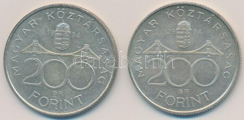 Leírás: 1994. 200Ft Ag "Deák" (2x) T:2 patina