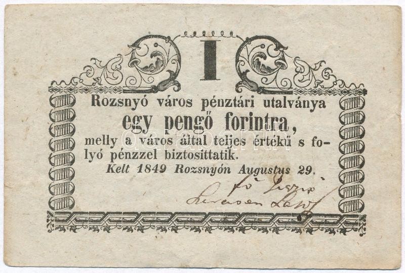 Rozsnyó 1849. 1Ft "Rozsnyó város pénztári utalványa" T:III