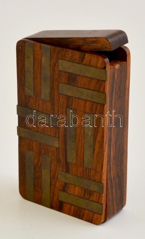 Leírás: Art deco fa ciageretta doboz, réz rátétekkel, 10,5×6,5 cm