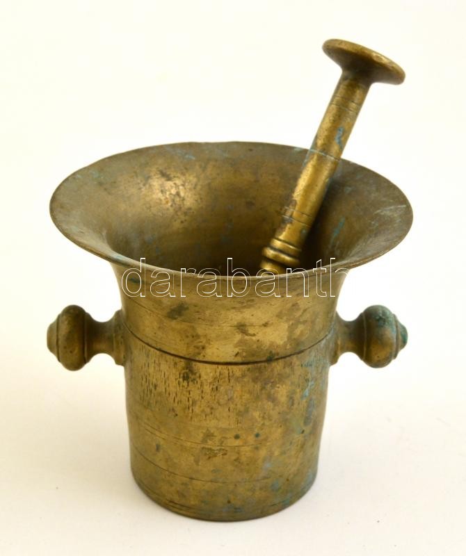 Rézmozsár törővel, m: 13,5 cm, h: 19,5 cm https://www.darabanth.com/hu/323-Gyorsarveres/323.0/Festmeny-mutargy-papirregiseg-egyeb/Bolhapiac~500011/Rezmozsar-torovel-m-13-5-cm-h-19-5-cm~II1791132