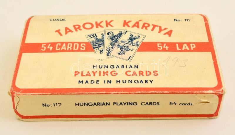 cca 1940 Luxus tarokk kártyapakli, eredeti bontatlan csomagolásban https://www.darabanth.com/hu/323-Gyorsarveres/323.0/Festmeny-mutargy-papirregiseg-egyeb/Bolhapiac~500011/cca-1940-Luxus-tarokk-kartyapakli-eredeti-bontatlan-csomagolasban~II1790881