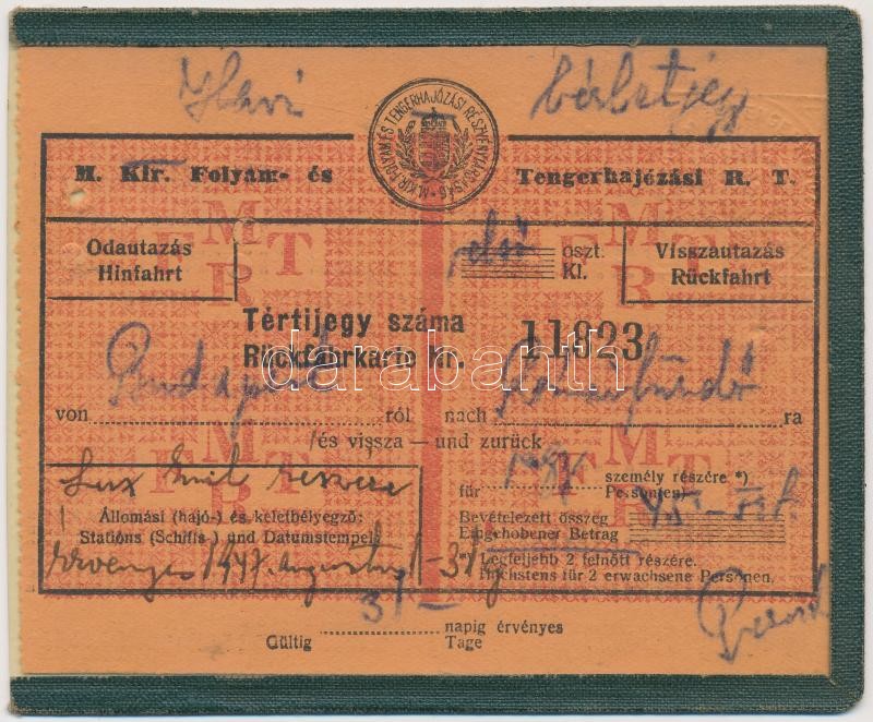 1947 Magyar Folyam és Tengerhajózári Rt. hajójegy https://www.darabanth.com/hu/323-Gyorsarveres/323.0/Festmeny-mutargy-papirregiseg-egyeb/Hajozas-Balaton~500027/1947-Magyar-Folyam-es-Tengerhajozari-Rt-hajojegy~II1790894