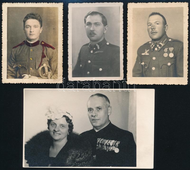 Leírás: cca 1920-1940 Katonaportrék, némelyik kitüntetéssel, 4 db fotó, 8×5,5 és 8×13,5 cm közötti méretekben