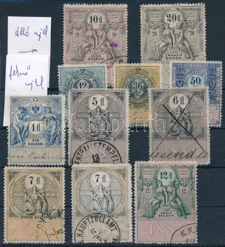 Leírás: Ausztria 1881-1888 11 db vízjeles okmánybélyeg (ca. 730,- EUR)
