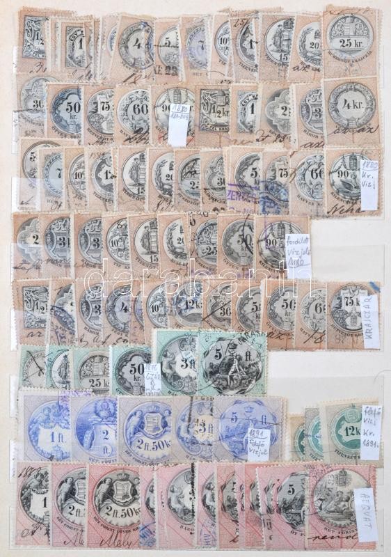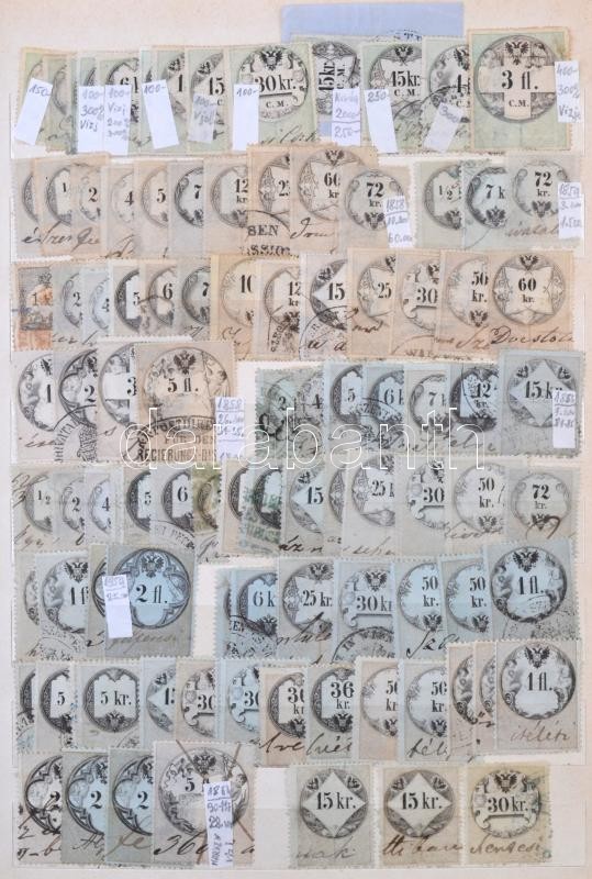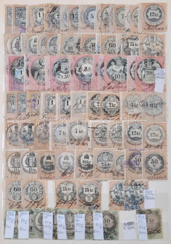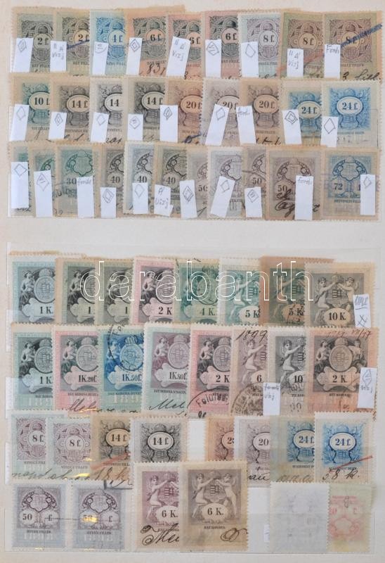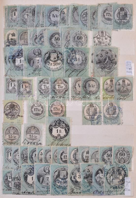 Rendkívül tartalmas magyar okmánybélyeg gyűjtemény 1854-től jó értékekkel, másodpéldányokkal, eltérésekkel megtömött 8 lapos A/4 berakóban. Érdemes megnézni!!