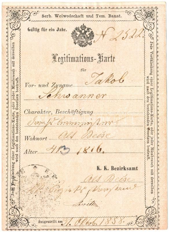 Leírás: 1858 Személyi igazolvány 30kr CM okmánybélyeggel