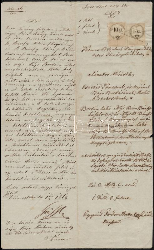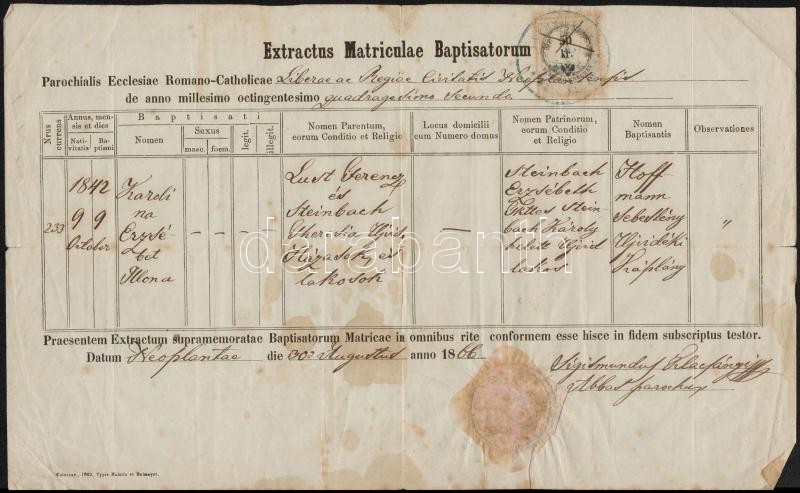 Leírás: 1866 Újvidék, keresztelési anyakönyvi kivonat + 8 db kapcsolódó okmány, okmánybélyegekkel