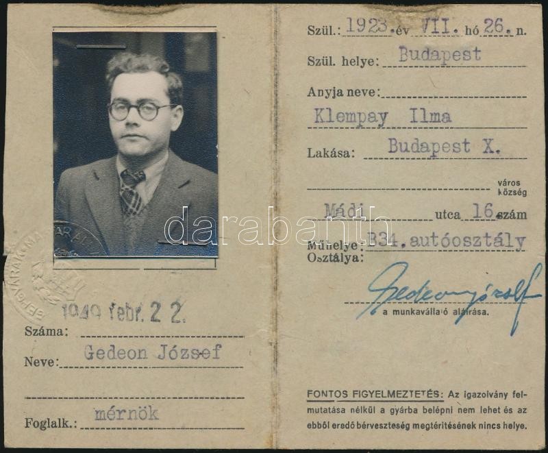 1949 Bp., Fényképes MÁVAG igazolvány https://www.darabanth.com/hu/323-Gyorsarveres/323.0/Festmeny-mutargy-papirregiseg-egyeb/Okmanyok~500016/1949-Bp-Fenykepes-MAVAG-igazolvany~II1790016