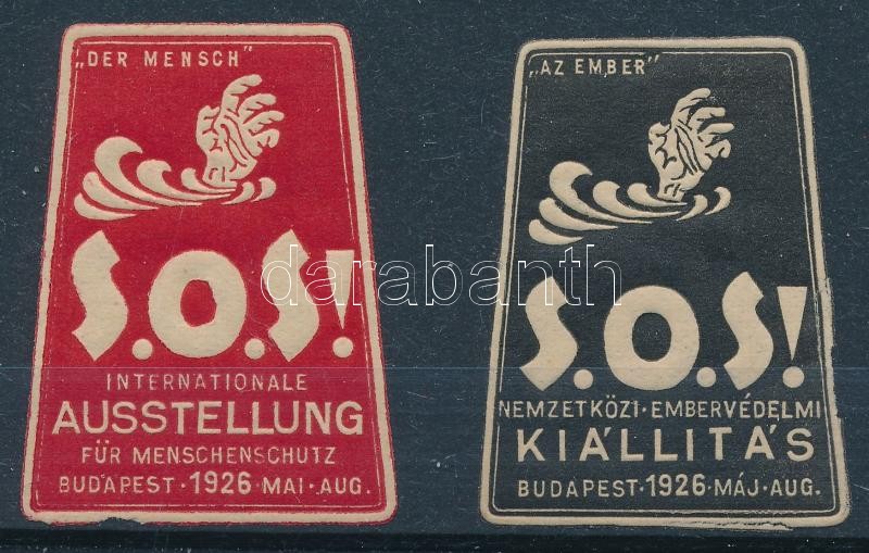 Leírás: 1926 Nemzetközi embervédelmi kiállítás 2 db klf levélzáró (piros és fekete színű)