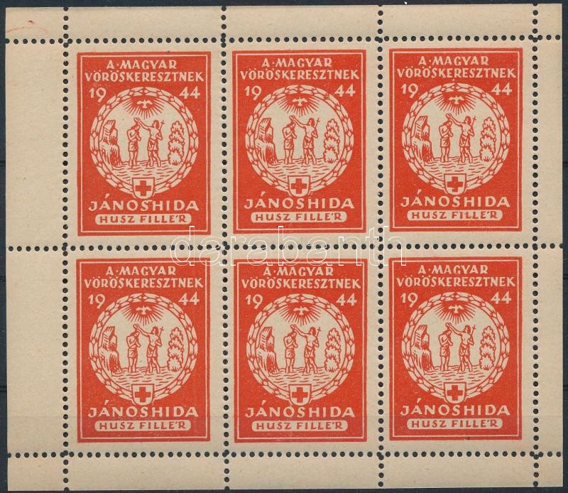 Leírás: 1944 Magyar Vöröskereszt, Jánoshida adománybélyeg 6 értékes kisív