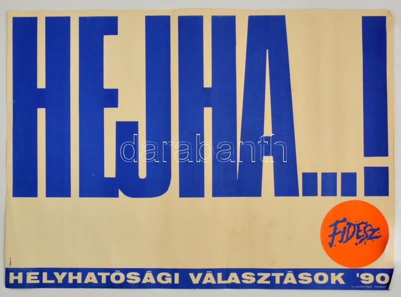 1990 Kemény György (1936-): "Hejha...!" a Fidesz választási plakátja a... https://www.darabanth.com/hu/323-Gyorsarveres/323.0/Festmeny-mutargy-papirregiseg-egyeb/Plakat~500029/1990-Kemeny-Gyorgy-1936-Hejha-a-Fidesz-valasztasi-plakatja-a-helyhatosagi-valasztC3~II1751147