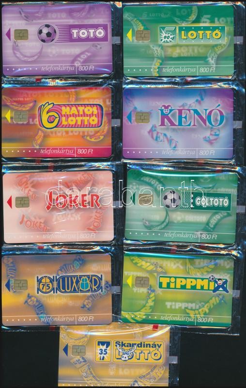 Leírás: 2002 MATÁV Szerencsejáték Rt. teljes telefonkártya sorozat, bontatlan csomagolásban, 9 db