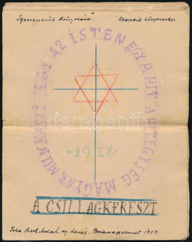 Leírás: 1939 Both Antal (1875-1963) balassagyarmati tanár, polihisztor kézirata a csillagkeresztről