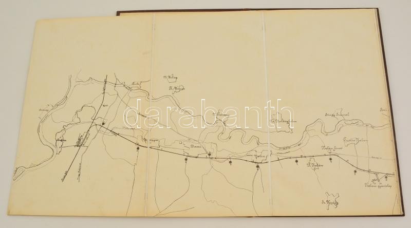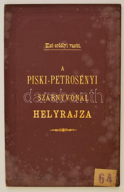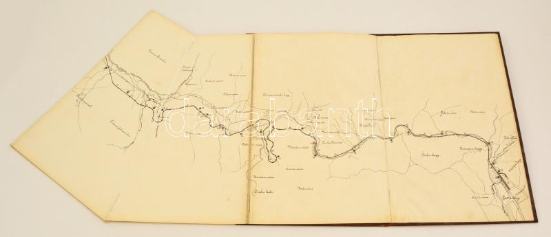 cca 1880 Első erdélyi vasút. A Piski-Petrozsényi szárnyvonal helyszínrajza. Nagyméretű, kihajtható tervrajz, az összes állomással. Aranyozott egészvászon kötésben. 252 x34 cm / Plan of the first Transylvanian railways. Piski and Petrosany. Large plan in full linen binding 252 x 34 cm