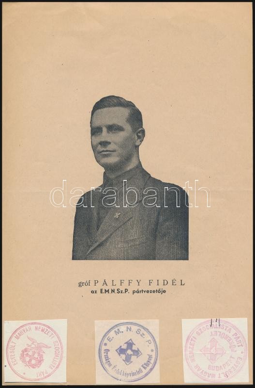cca 1940 Egyesült Magyar Nemzetiszocialista Párt röplap + 1P téglajegy... https://www.darabanth.com/hu/323-Gyorsarveres/323.0/Festmeny-mutargy-papirregiseg-egyeb/Tortenelmi-dokumentumok-keziratok-erdekessegek~500017/cca-1940-Egyesult-Magyar-Nemzetiszocialista-Part-roplap-plus-1P-teglajegy-alu-erme~II1789815