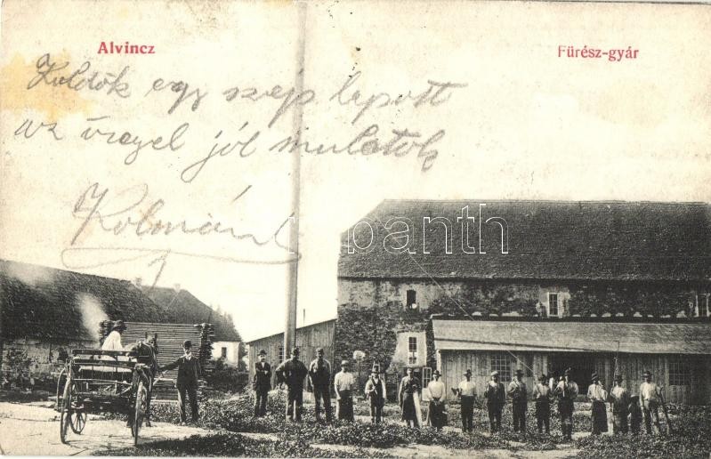 1907 Alvinc, Vintu de Jos; Fűrész gyár, lovaskocsi, munkások. Kiadja I... https://www.darabanth.com/hu/323-Gyorsarveres/323.0/Kepeslapok/Erdely~2500006/1907-Alvinc-Vintu-de-Jos-Furesz-gyar-lovaskocsi-munkasok-Kiadja-Israel-Salamon-sawmill-h~II1794667
