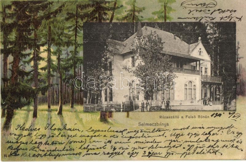 1901 Selmecbánya, Schemnitz, Banska Stiavnica; Rózsa szálló Felsőrónán... https://www.darabanth.com/hu/323-Gyorsarveres/323.0/Kepeslapok/Felvidek~2500007/1901-Selmecbanya-Schemnitz-Banska-Stiavnica-Rozsa-szallo-Felsoronan-Erdos-litho-keret-K~II1794646