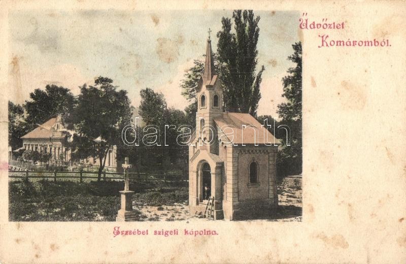 Leírás: Komárom, Komárno; Erzsébet szigeti kápolna, létra. E. D. K. 9. / chapel, ladder (b)
