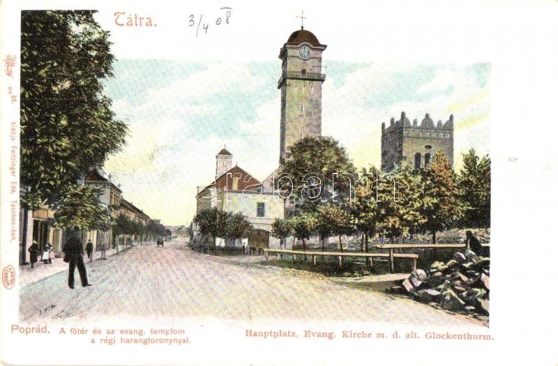 Leírás: Poprád (Tátra), Fő tér, evangélikus templom, régi harangtorony. Feitzinger Ede 68. / main square, church, old church bell tower (Rb)