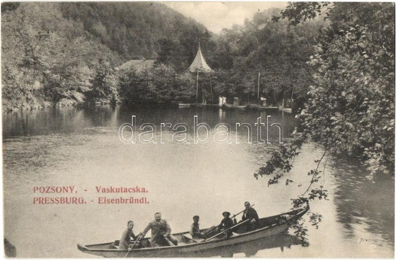 Pozsony, Pressburg. Bratislava; Vaskutacska, tó csónakázókkal / Eisenb... https://www.darabanth.com/hu/323-Gyorsarveres/323.0/Kepeslapok/Felvidek~2500007/Pozsony-Pressburg-Bratislava-Vaskutacska-to-csonakazokkal-Eisenbrunnel-Eisenbrundl-Z~II1796027