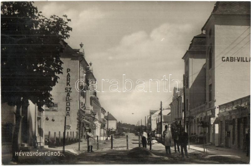 Leírás: 1929 Hévízgyógyfürdő, Park szálloda, Gabi Villa, üzletek