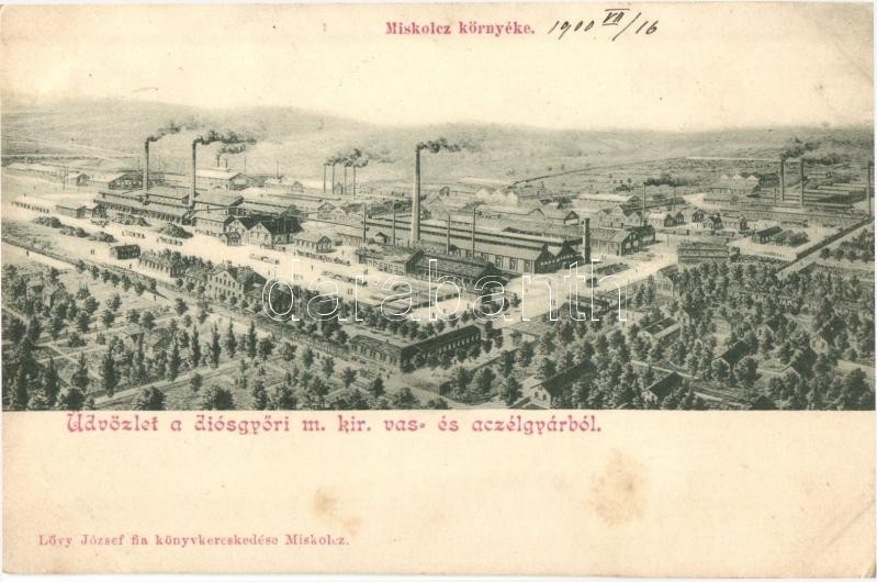 Diósgyőr (Miskolc), M. kir. vas- és acélgyár. Lövy József fia kiadása ... https://www.darabanth.com/hu/323-Gyorsarveres/323.0/Kepeslapok/Magyarorszag~2500005/Diosgyor-Miskolc-M-kir-vas-es-acelgyar-Lovy-Jozsef-fia-kiadasa-EK~II1794383