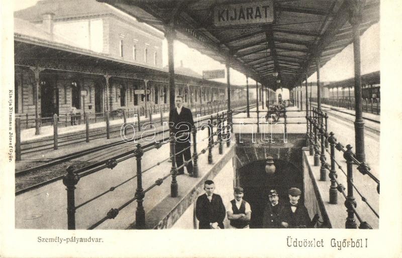 Leírás: Győr, Vasútállomás, személy-pályaudvar, kijárat. Kiadja Nitsmann József