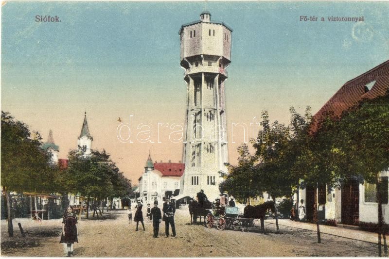 Siófok, Fő tér, Víztorony, hintó https://www.darabanth.com/hu/323-Gyorsarveres/323.0/Kepeslapok/Magyarorszag~2500005/Siofok-Fo-ter-Viztorony-hinto~II1777129